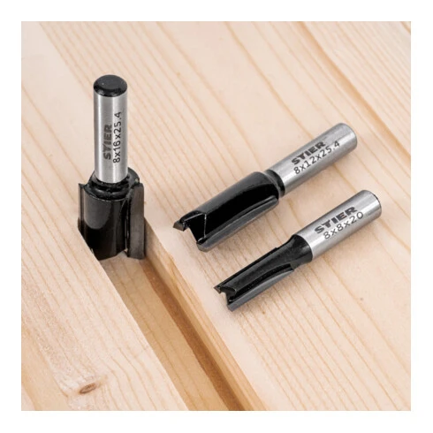 - 3 x fraises à rainurer (8|8|20 mm ; 8|10|25 mm ; 8|16|25 mm)