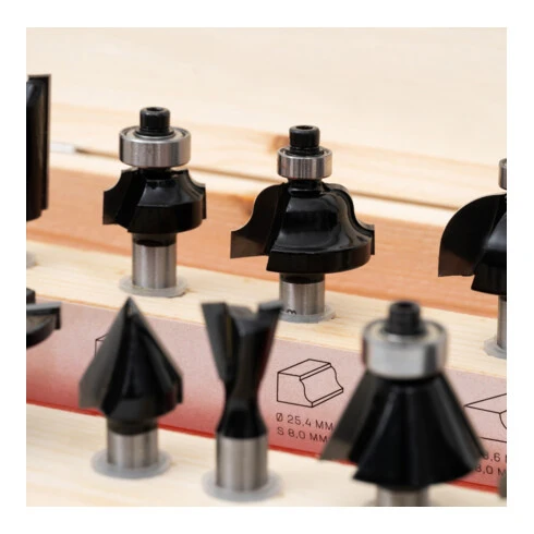 La gamme de fraises STIER est idéale pour une utilisation dans de nombreux domaines d’application. Les arêtes en carbure des fraises garantissent la robustesse et la longévité du produit. Ce jeu d’outils est le compagnon idéal pour le travail du bois avec toutes les fraises à main courantes.