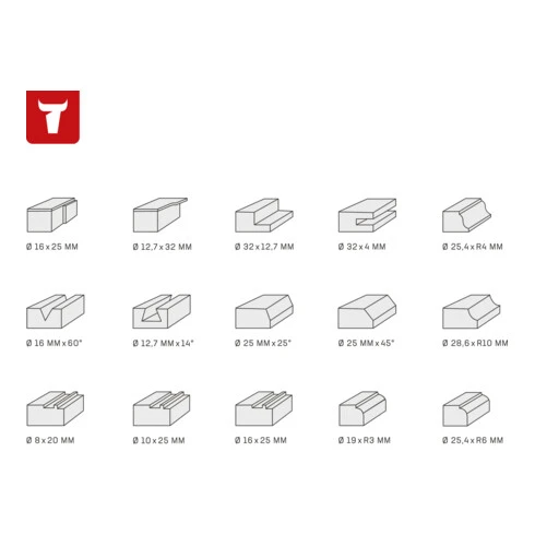 - 2 x fraises à affleurer (8|13|25 mm ; 8|16|25 mm)