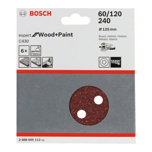 Feuille abrasive C430, pack de 6 125 mm, 60; 120; 240; Pack de 6