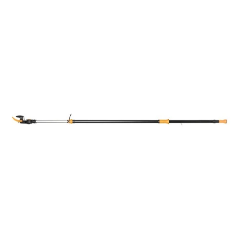 coupe exacte, sas efforts · même dans un arbre aux branches touffues, car il n’est pas indispensable de bloquer la tête de coupe · portée totale, utilisateur compris, env. 6,50 m · fixation de la longueur individuelle par levier de serrage