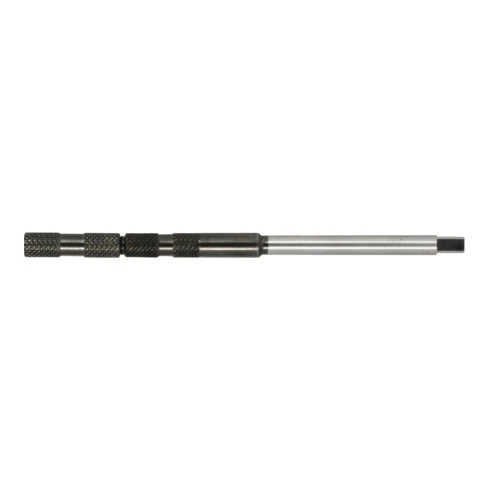 - La pince de serrage est fixée au taraud par serrage de l’écrou moleté.La transmission du couple s’effectue via le carré.L’extrémité arrière est conforme à la norme DIN pour assurer la compatibilité de la rallonge avec les adaptateurs de taraudage et les pinces de serrage ER à carré.