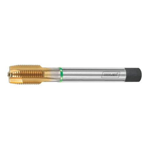 - Taraud HSS-E optimiséavec revêtement TiN réduisant le frottement.