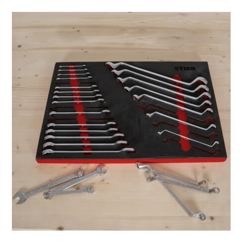 Convient au atelier chariot d’atelier STIER et aux modèles comparables – jeu de clés mixtes et de clés polygonales doubles de STIER dans toutes les dimensions importantes dans un plateau en mousse souple de haute qualité.