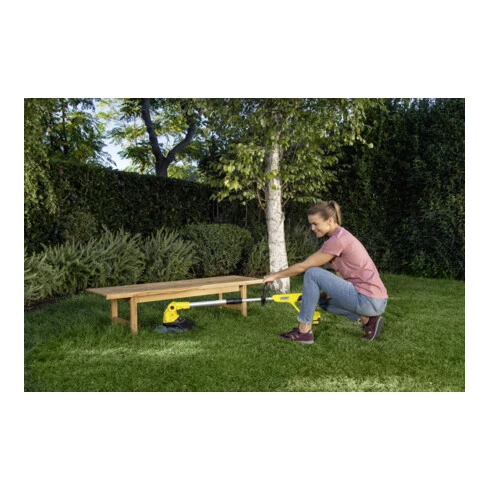 - Pour travailler dans de tels coins, il faut un appareil petit, flexible et en tout cas performant : un coupe-bordures de Kärcher.