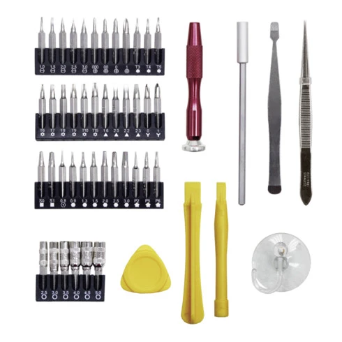 - Avec le kit d’outils électroniques et de précision, vous êtes équipé pour toutes sortes de travaux de vissage, par exemple sur les appareils photo, les smartphones, les montres et autres appareils avec les plus petites vis.