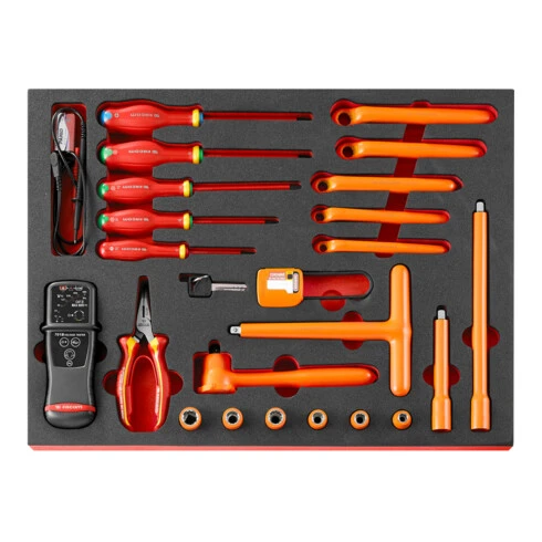 - Module en mousse avec 23 outils pour travailler sur les véhicules électriques.