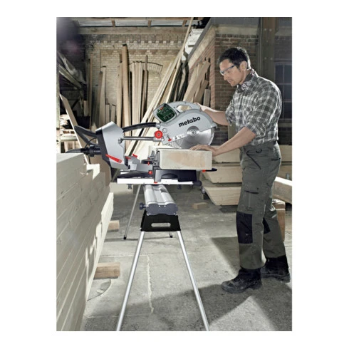 Flexibilité maximale lors du sciage grâce au plateau qui tourne dans les deux sens et à la tête de scie inclinable dans les deux sens