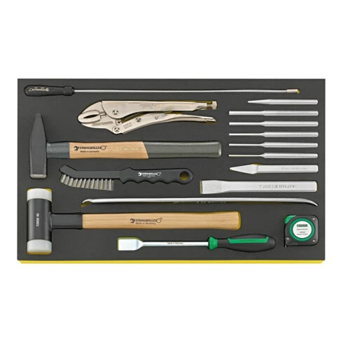Marteaux, burins etc. en plateau TCS 530 x 350 x 45 mm, 16 pièces