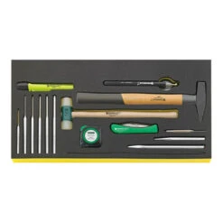 Marteaux, burins etc. en plateau TCS pour les tiroirs du coffre à outils à roulettes réf. 13217, 460 x 250 x 30 mm, 16 pièces