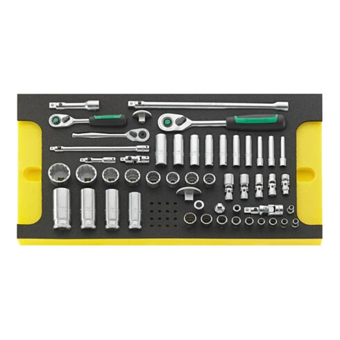 Outillage en plateau TCS pour le plateau amovible du coffre à outils à roulette réf. 13217, ne peut pas être combiné avec le couvercle transparent 13217 TA. 455 x 240 x 30 mm, 51 pièces.